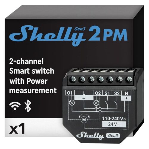 Shelly 2PM Gen3 – Dual-Channel Wi-Fi Smart Relay with Power Monitoring & Cover Control